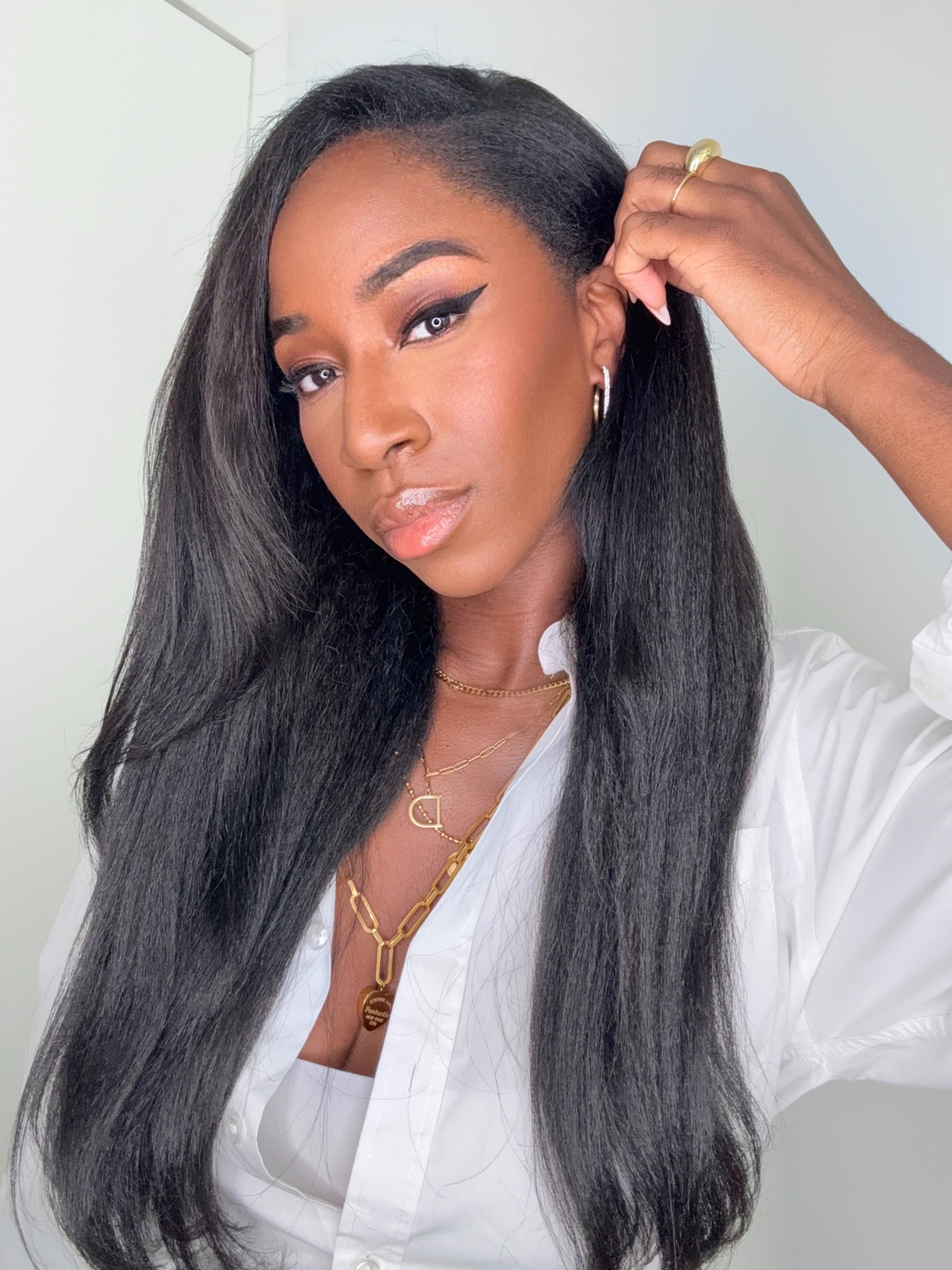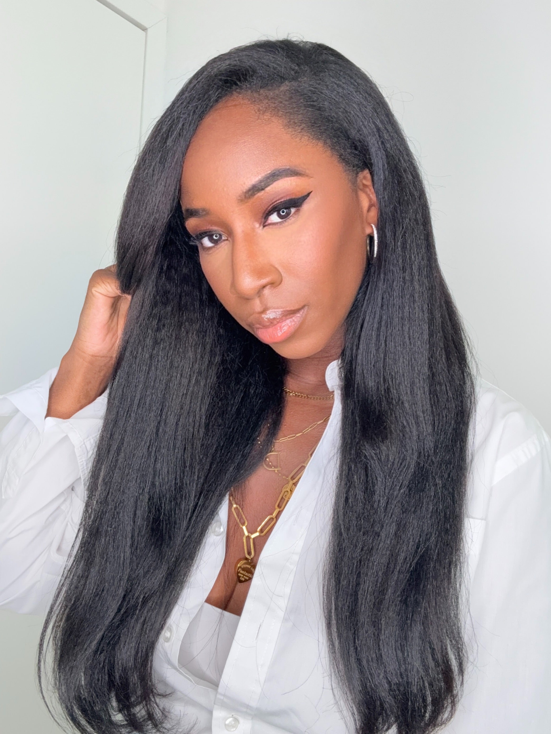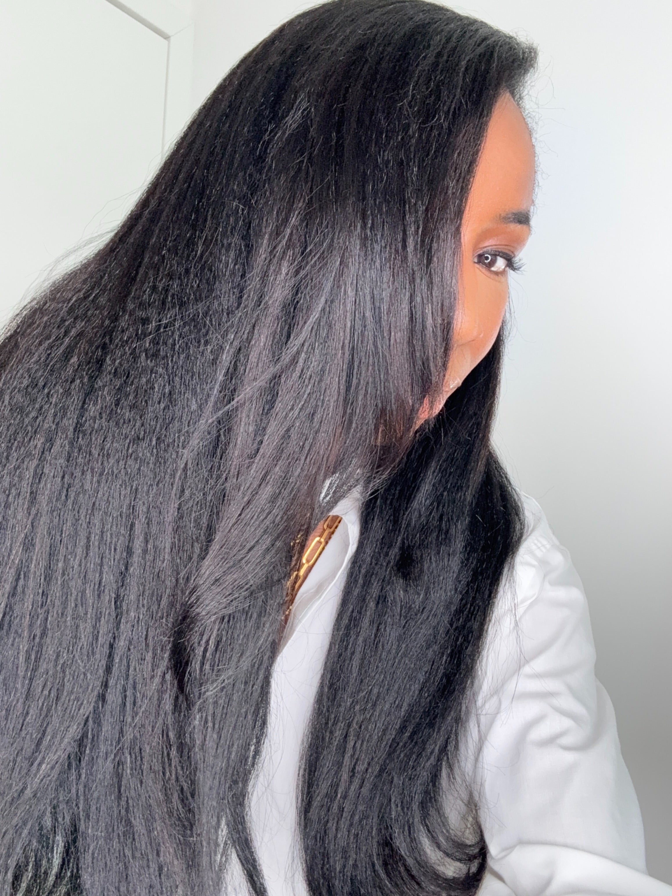 Découvrez la V-Part Wig IMANY en texture Kinky Straight, conçue pour imiter à la perfection les cheveux afro lissés blow-out. Sa texture offre du volume, de la fluidité et un rendu chic et naturel.