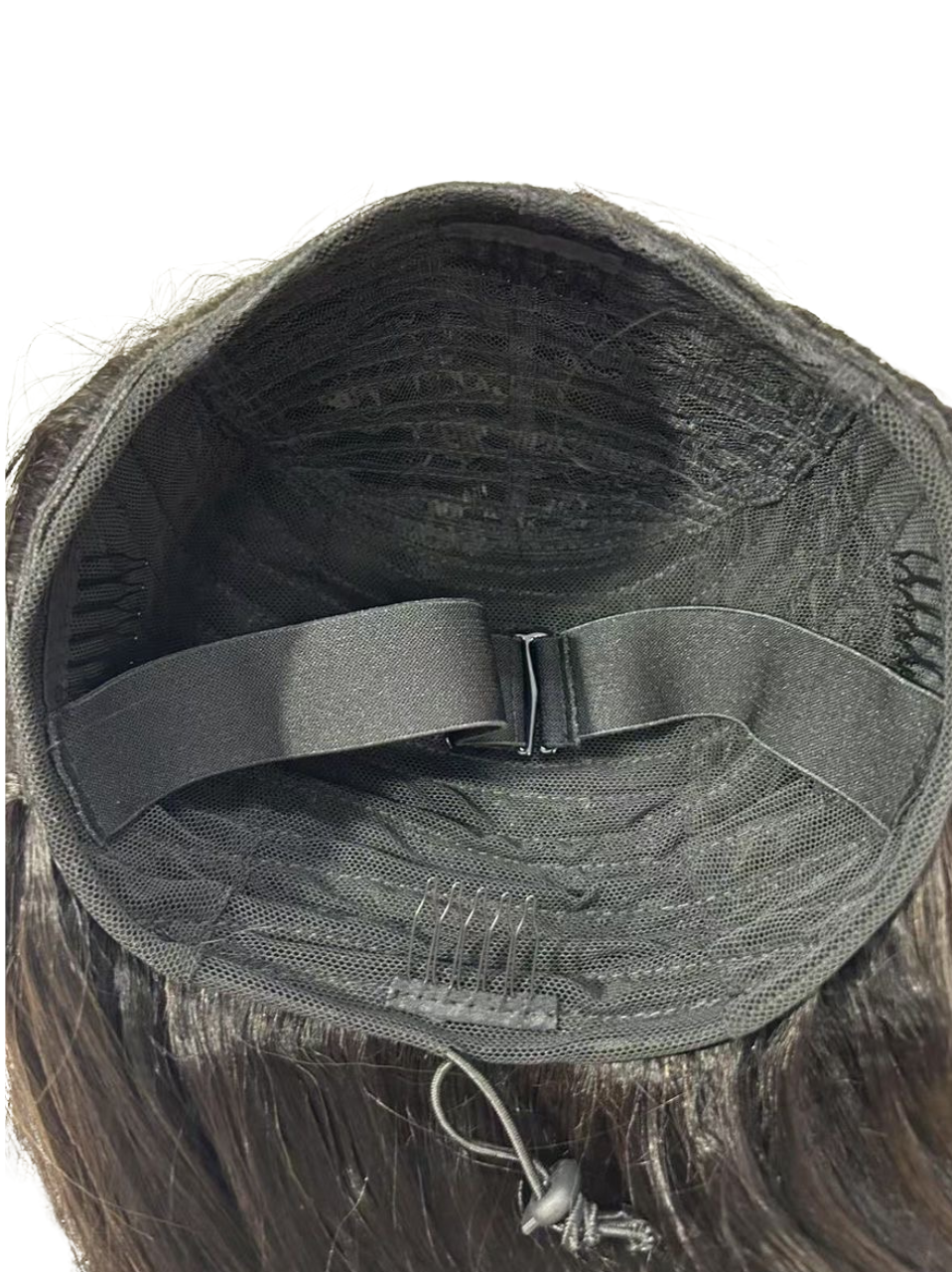 3. Fixez la perruque avec ses peignes intégrés et ajustez l’élastique pour un maintien optimal.